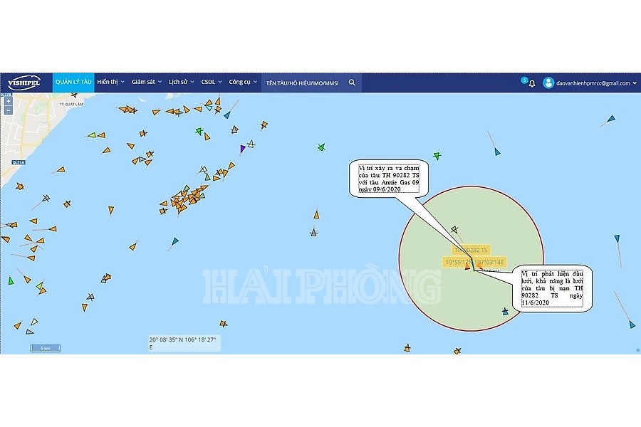 Căn cứ thông báo của Bộ Chỉ huy Bộ đội biên phòng tỉnh Thanh Hóa về việc va chạm giữa tàu Annie Gas 09 và tàu cá TH 90282 TS, thừa ủy quyền của Bộ trưởng Bộ giao thông vận tải, Tổng công ty Bảo đảm an toàn hàng hải miền Bắc thông báo tồn tại chướng ngại vật nguy hiểm mới phát hiện là tàu cá TH 90282 TS bị chìm trong khu vực vùng biển Vịnh Bắc Bộ có tọa độ gần đúng tại vị trí 19°55’03.7″ vĩ độ Bắc, 107°02’53.5″ kinh độ Đông (hệ VN-2000). Vị trí tàu cá TH 90282 TS bị chìm nằm cách đèn biển Ba Lạt khoảng 33,3 hải lý về phía Đông Nam.