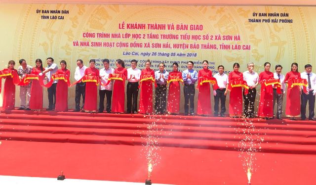 Sáng 26/5, UBND thành phố tổ chức Lễ khánh thành công trình Nhà lớp học 2 tầng Trường Tiểu học số 2, xã Sơn Hà và Nhà sinh hoạt cộng đồng xã Sơn Hải, huyện Bảo Thắng, tỉnh Lào Cai, do thành phố Hải Phòng xây dựng nhân dịp kỷ niệm 55 năm nhân dân Hải Phòng lên xây dựng kinh tế, văn hóa, quốc phòng tại tỉnh Lào Cai.