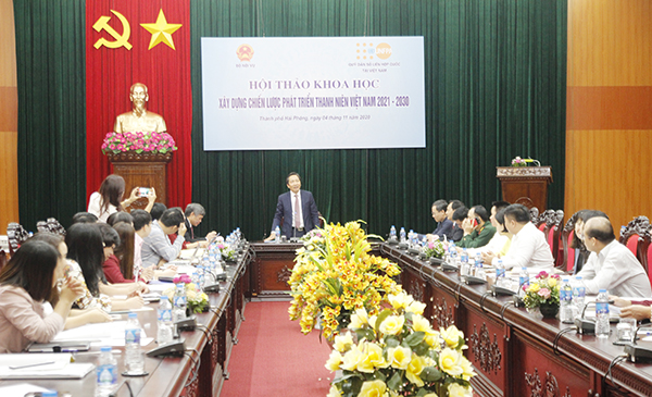 Sáng 4/11, Bộ Nội vụ phối hợp với Quỹ dân số Liên hợp quốc tại Việt Nam tổ chức Hội thảo góp ý vào dự thảo xây dựng chiến lược phát triển thanh niên Việt Nam giai đoạn 2021-2030. Đồng chí Trần Anh Tuấn, Thứ trưởng Bộ Nội vụ chủ trì Hội thảo. Lãnh đạo thành phố Hải Phòng dự hội thảo có đồng Nguyễn Xuân Bình, Phó Chủ tịch Thường trực UBND thành phố, đại diện các bộ, cơ quan Trung ương và ngành nội vụ các tỉnh, thành phố khu vực phía Bắc.