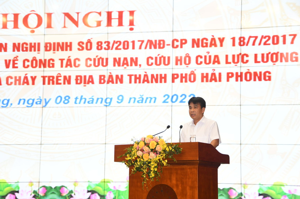 Sáng 8/9, UBND thành phố tổ chức Hội nghị sơ kết 5 năm thực hiện Nghị định số 83/2017/NĐ-CP của Chính phủ quy định về công tác cứu nạn, cứu hộ của lực lượng phòng cháy và chữa cháy trên địa bàn thành phố Hải Phòng. Phó Chủ tịch UBND thành phố Nguyễn Đức Thọ chủ trì Hội nghị.