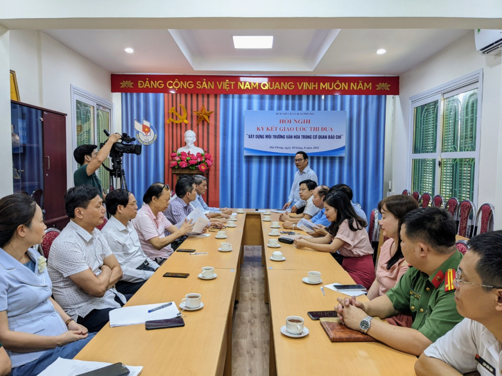 Hằng năm, trên cơ sở chấm điểm thi đua giữa các chi hội, liên chi hội, Hội đồng thi đua khen thưởng của Hội Nhà báo Hải Phòng sẽ tiến hành việc đánh giá kết quả thực hiện, bình xét, trao tặng danh hiệu thi đua, khen thưởng, đề xuất hình thức khen thưởng tập thể, cá nhân có thành tích xuất sắc trong phong trào thi đua, xây dựng môi trường văn hóa trong cơ quan báo chí.