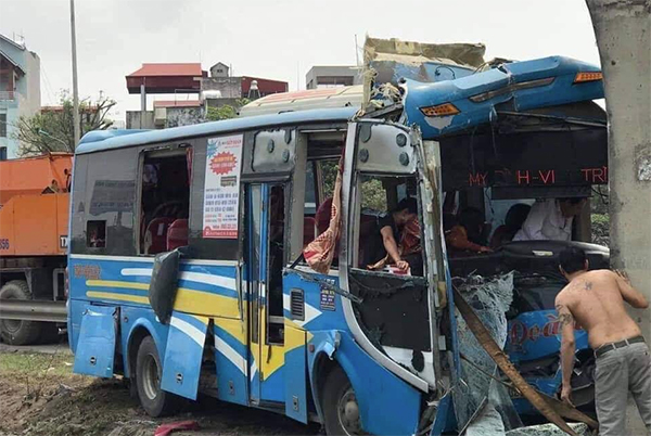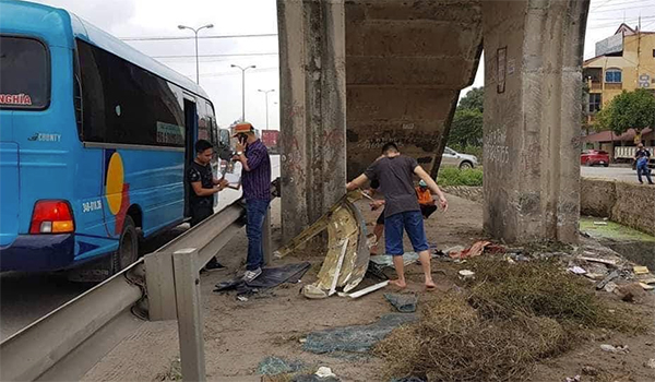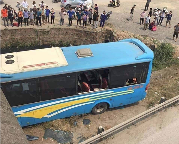 Khi đó, chiếc xe khách mang BKS 15B 02582 của nhà xe Kết Đoàn đang lưu thông theo hướng Hải Phòng – Hà Nội đến đoạn chân cầu vượt số 6 bất ngờ mất lái đâm vào chân cầu, khiến 11 người bị thương, xe khách hư hỏng nặng.
