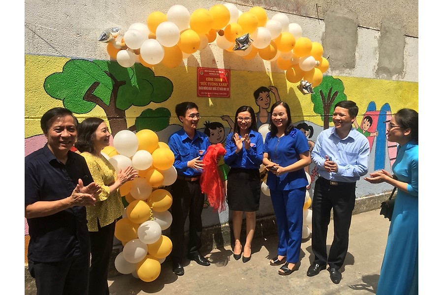Đây là công trình thanh niên “Bức tường xanh” do Đoàn Thanh niên phường Gia Viên, thực hiện chào mừng những ngày lễ lớn trong tháng 5 và Ngày Quốc tế Thiếu nhi 1-6.