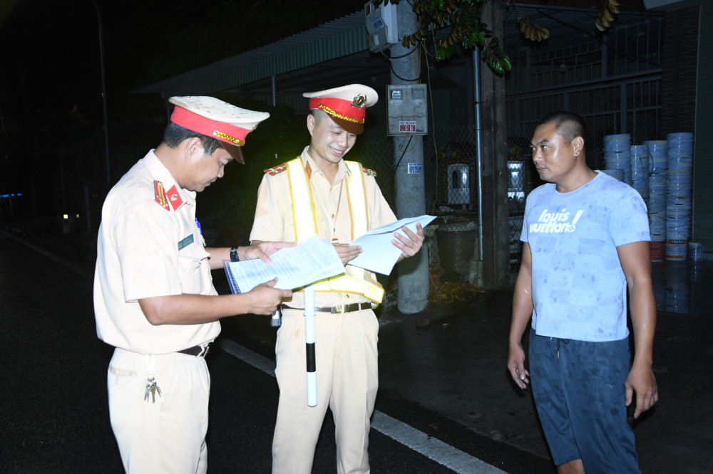 Đêm 18/7, Đại tá Bùi Trung Thành, Phó Giám đốc Công an thành phố, Phó trưởng Ban ATGT thành phố trực tiếp chỉ đạo tổ công tác cơ động thuộc Phòng CSGT đường bộ-đường sắt đi kiểm tra, xử lý các hành vi vi phạm TTATGT ban đêm trên tuyến tỉnh lộ 354, đoạn qua huyện An Lão…