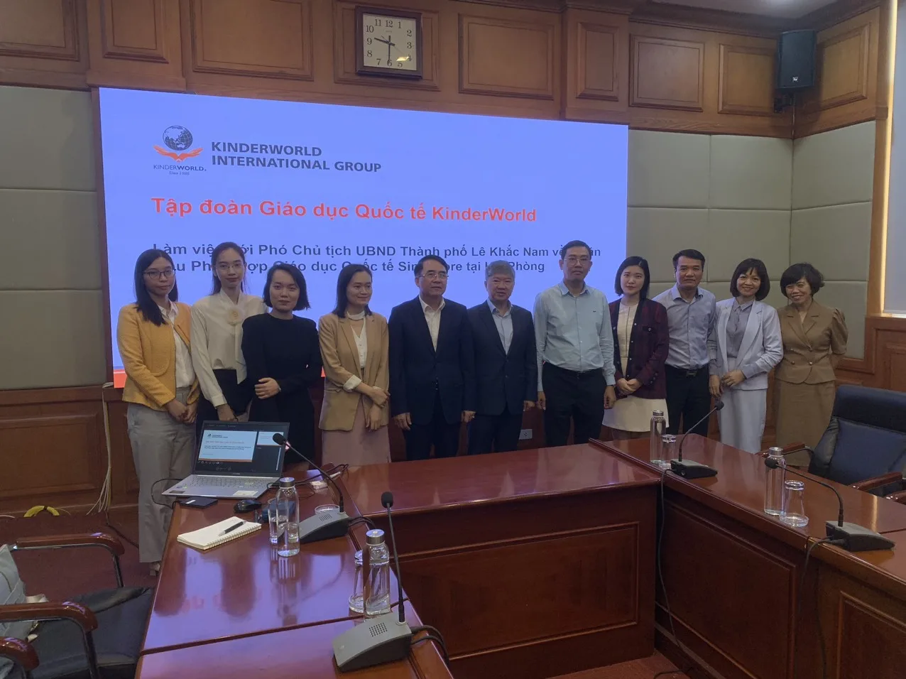 Ngày 27/11/2023, theo đề nghị của Tập đoàn Quốc tế KinderWorld, tại Trung tâm hội nghị thành phố diễn ra buổi làm việc giữa lãnh đạo thành phố và Chủ tịch tập đoàn về việc triển khai Dự án Khu phức hợp Giáo dục Quốc tế Singapore tại Hải Phòng.