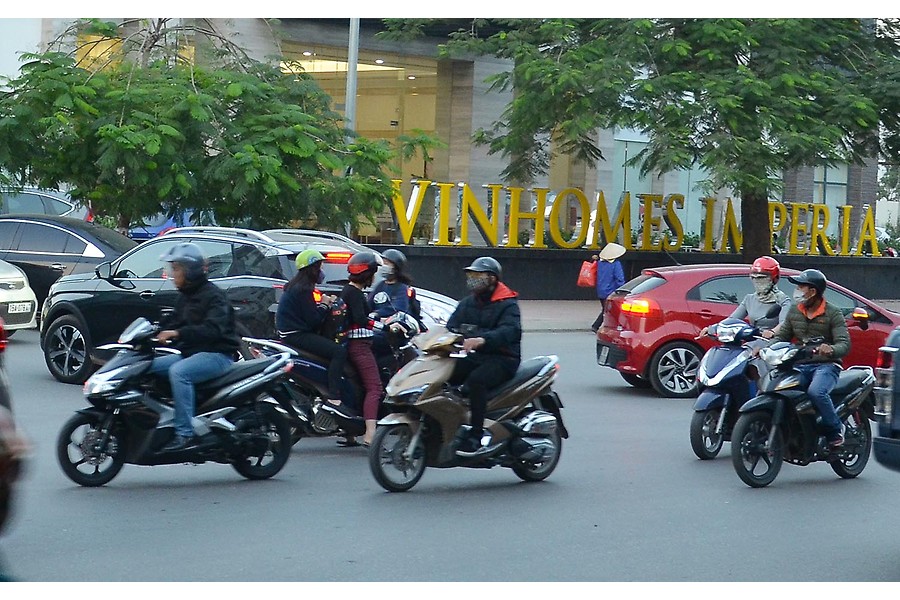 Mật độ phương tiện ra vào khu đô thị Vinhomes Imperia rất đông, nhất là giờ cao điểm